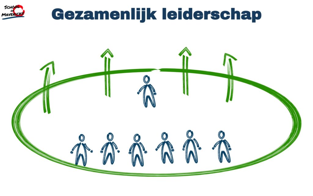 Gezamenlijk leiderschap is het niveau waarbij leiderschap niet alleen bij jou ligt. Je weet het team zo te faciliteren dat het gezamenlijk eigenaarschap neemt voor de gedeelde uitdagingen. Waar de leider bij teamleiderschap de lijnen in zijn eentje moet uitzetten — en zich daarbij ook vaak alleen voelt staan — wordt die last bij gezamenlijk leiderschap samen gedragen.